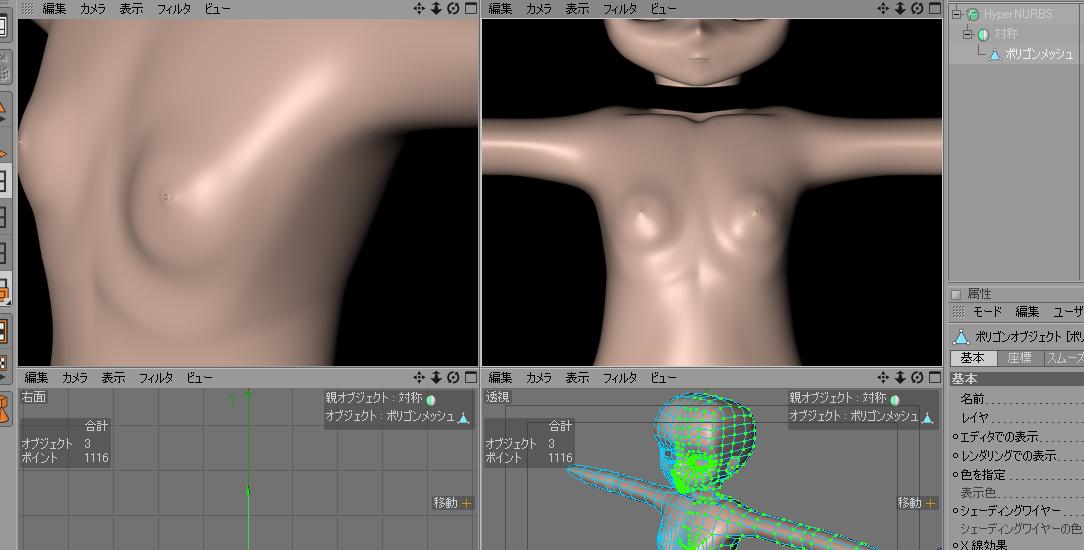 (表面材質設定できなでやんの・・(一体型だけど、頭と身体離れた状態形状だと)