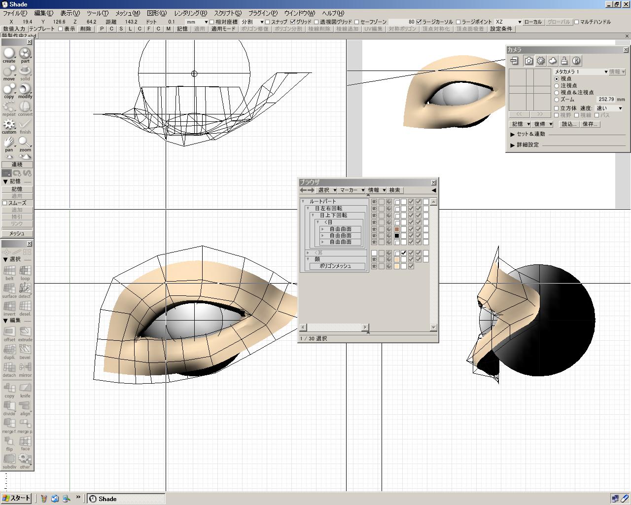目の周りを分離して滑らかに瞼が閉じるように修正中